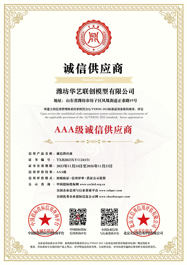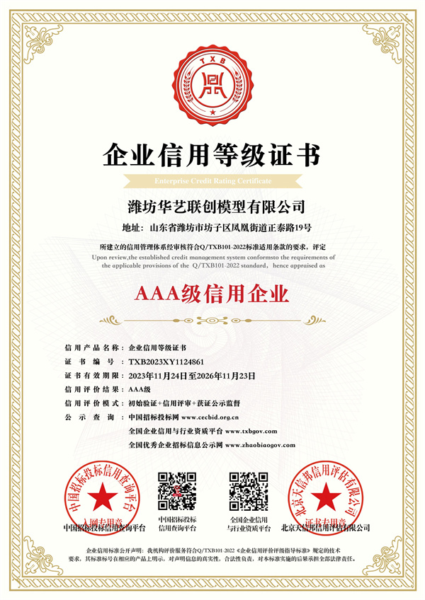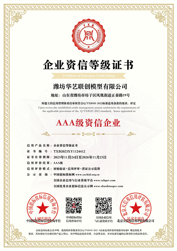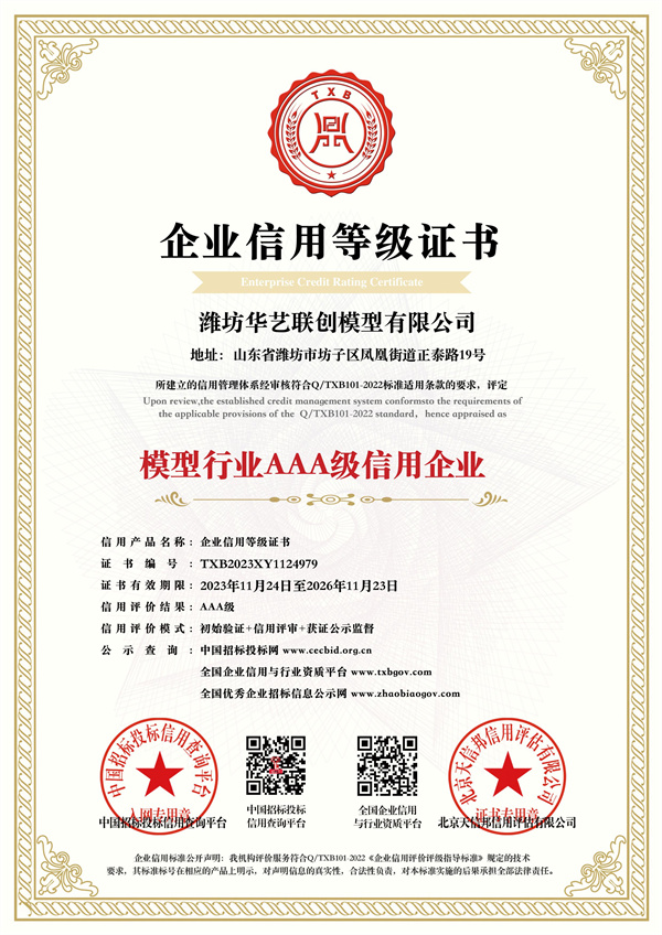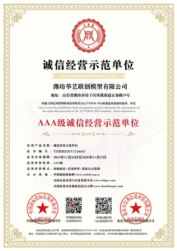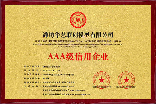 模型行業(yè)3A級信用企業(yè)